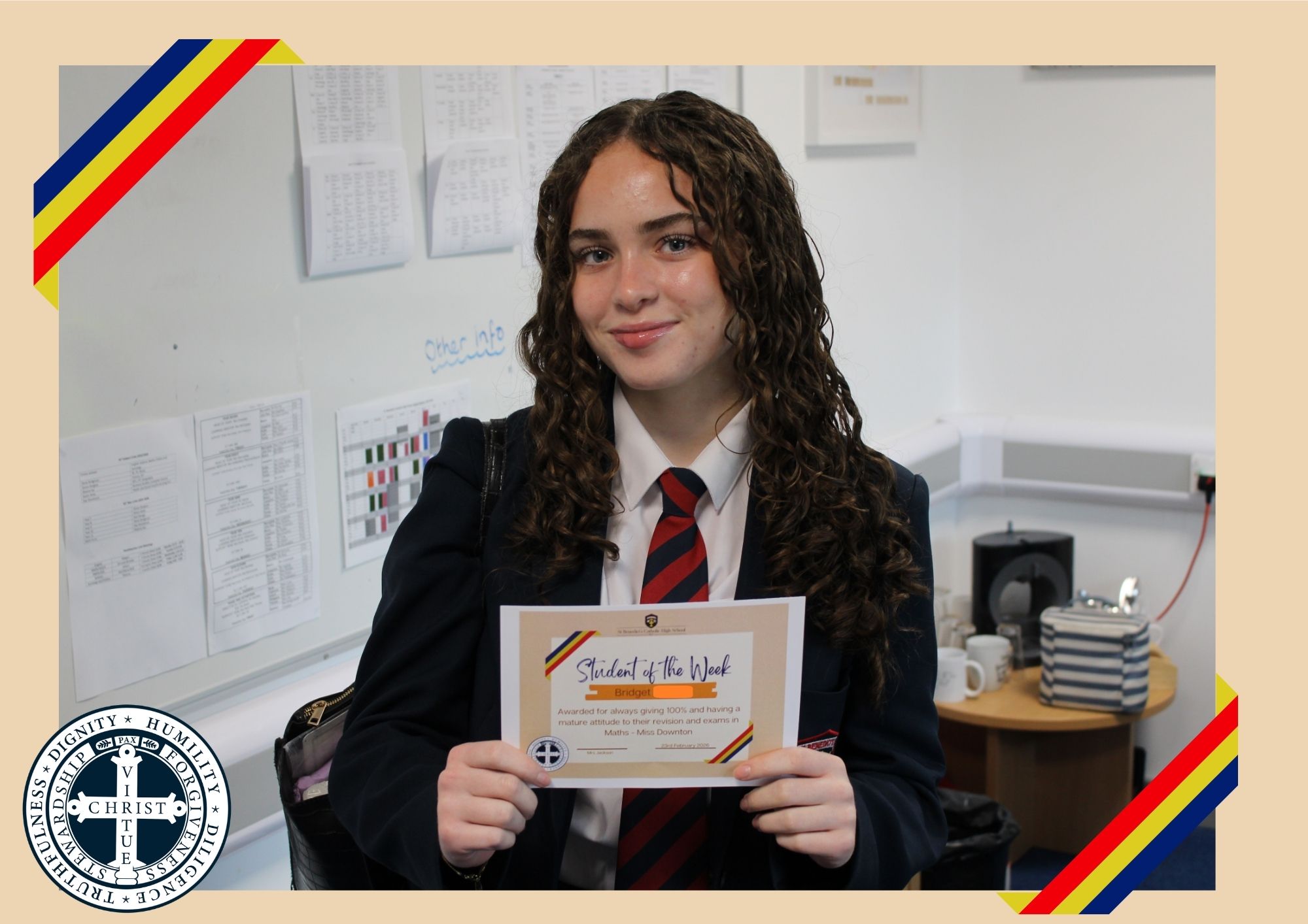 Sixth Form – Isabella R – Awarded for working hard and having a mature attitude towards her studies in resit Maths lessons – Miss Downton