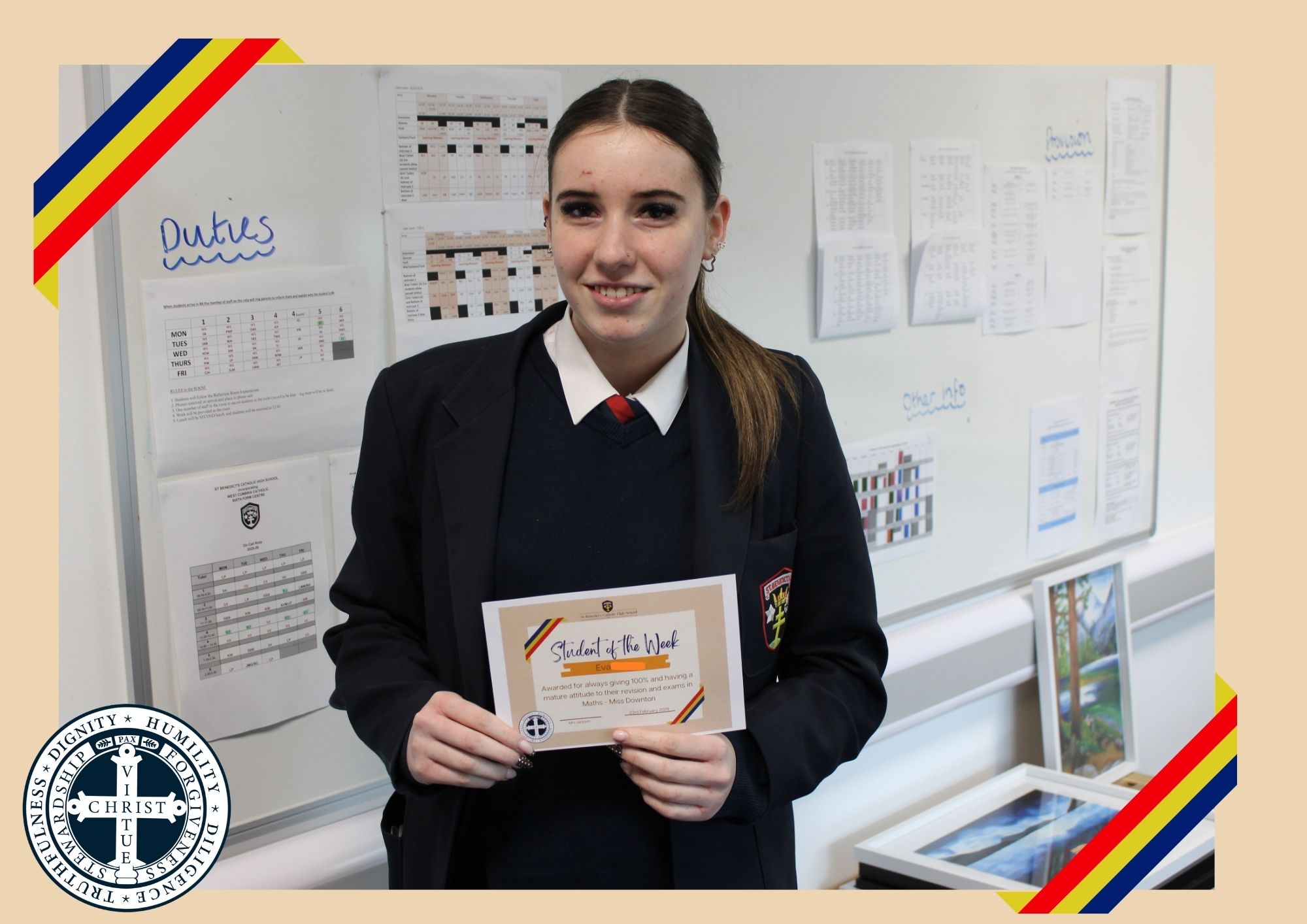 Year 11 – Bridget S – Awarded for always giving 100% and having a mature attitude to their revision and exams in Maths – Miss Downton#