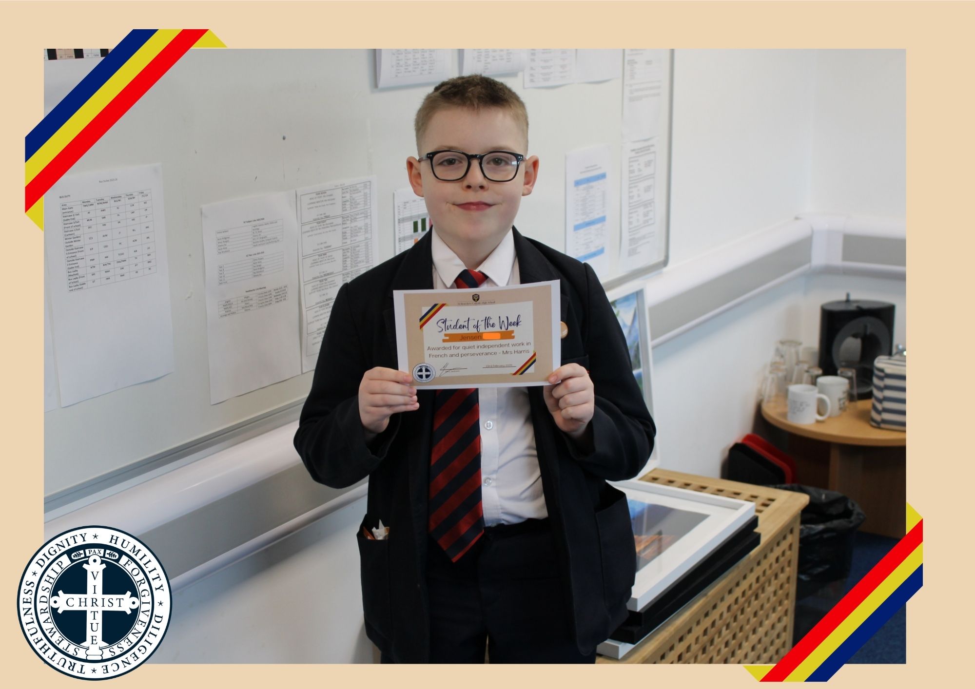 Year 7 – Malachy McN – Awarded for quiet, independent work in French and performance on Duolingo – Mrs Harris