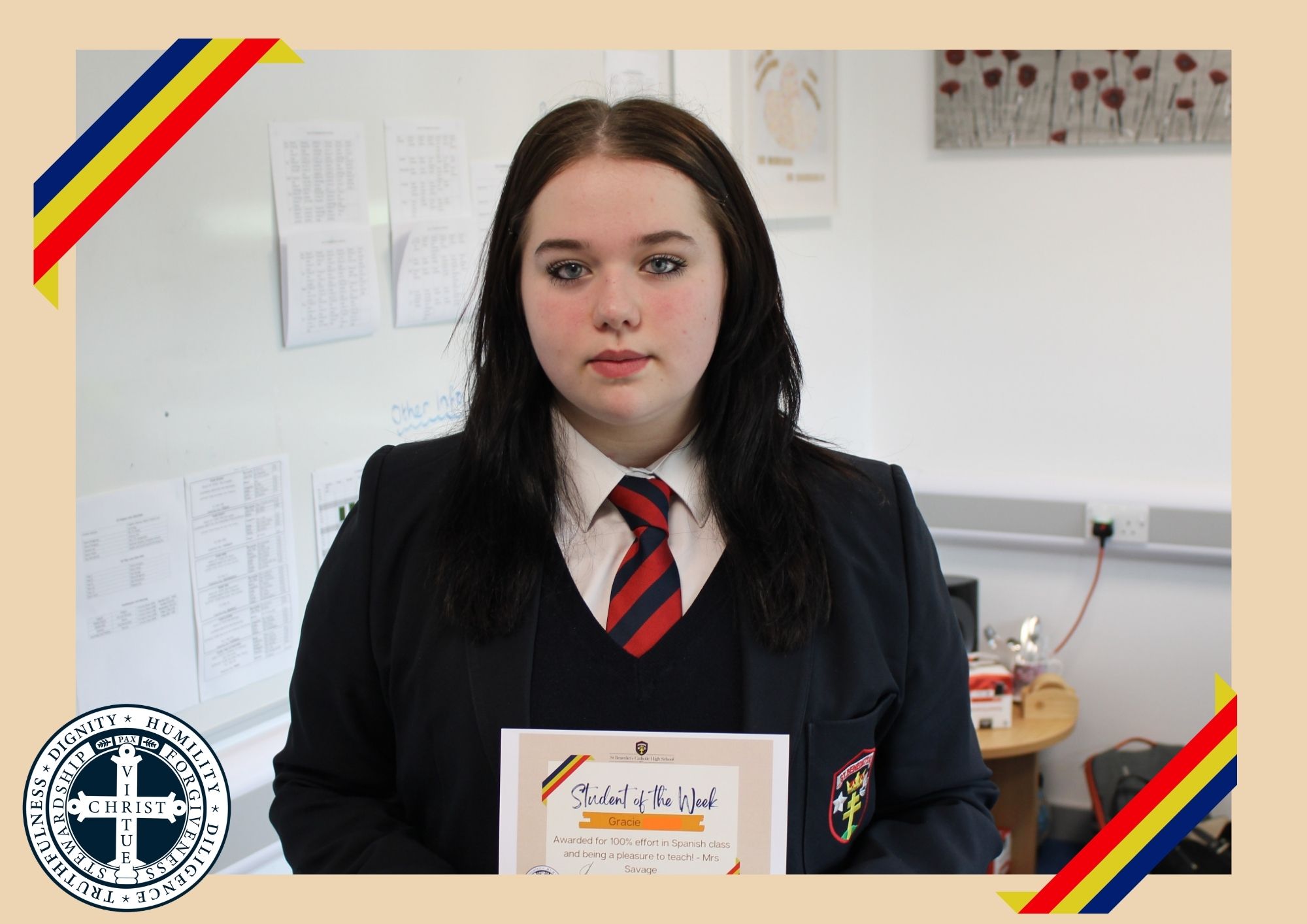 Year 9 – Gracie M – Awarded for 100% effort in Spanish class and being a pleasure to teach! – Mrs Savage