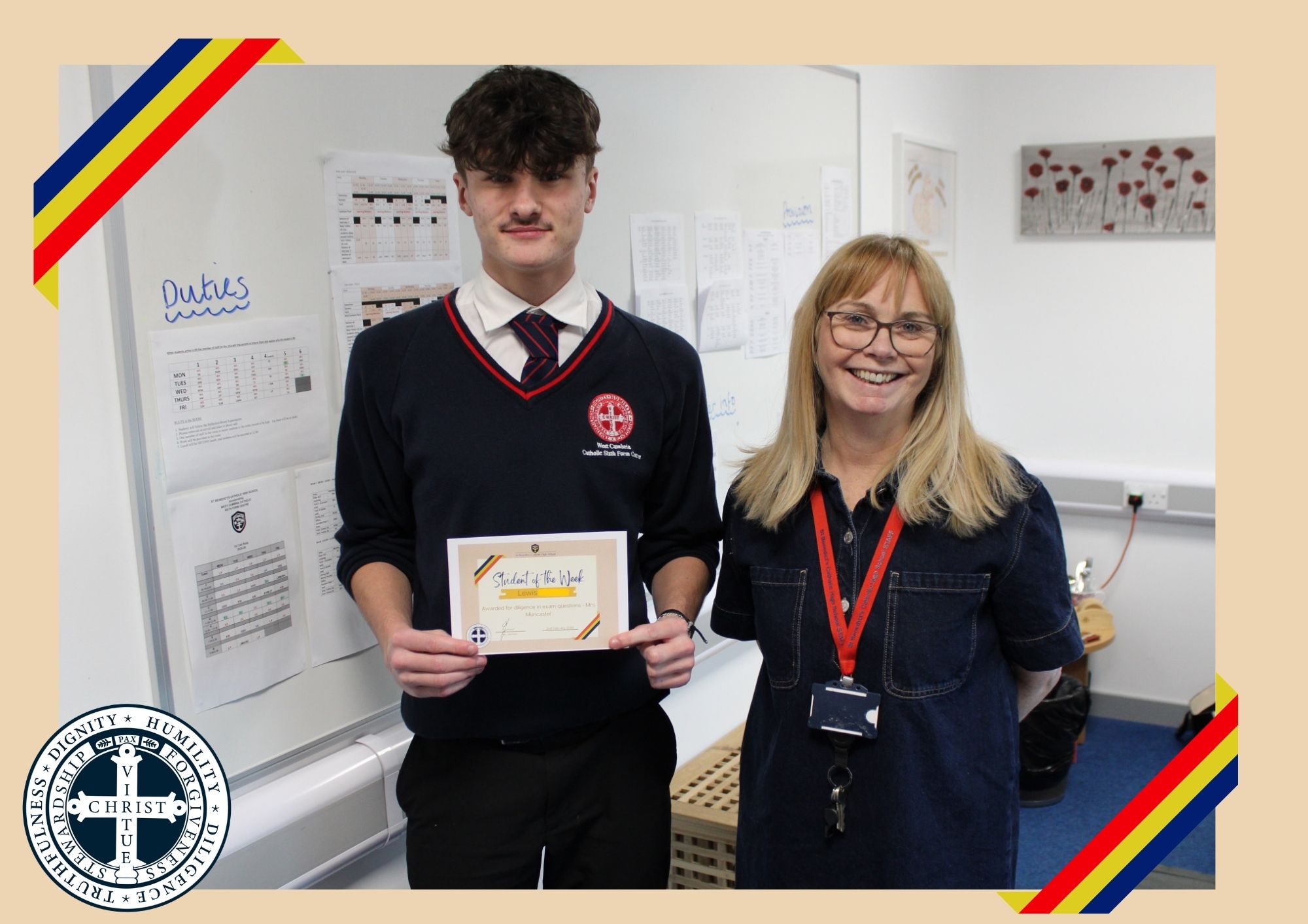 Sixth Form – Jude I – Awarded for creating an extra planning document to get on track with his EPQ and sticking to it – Mrs Harris