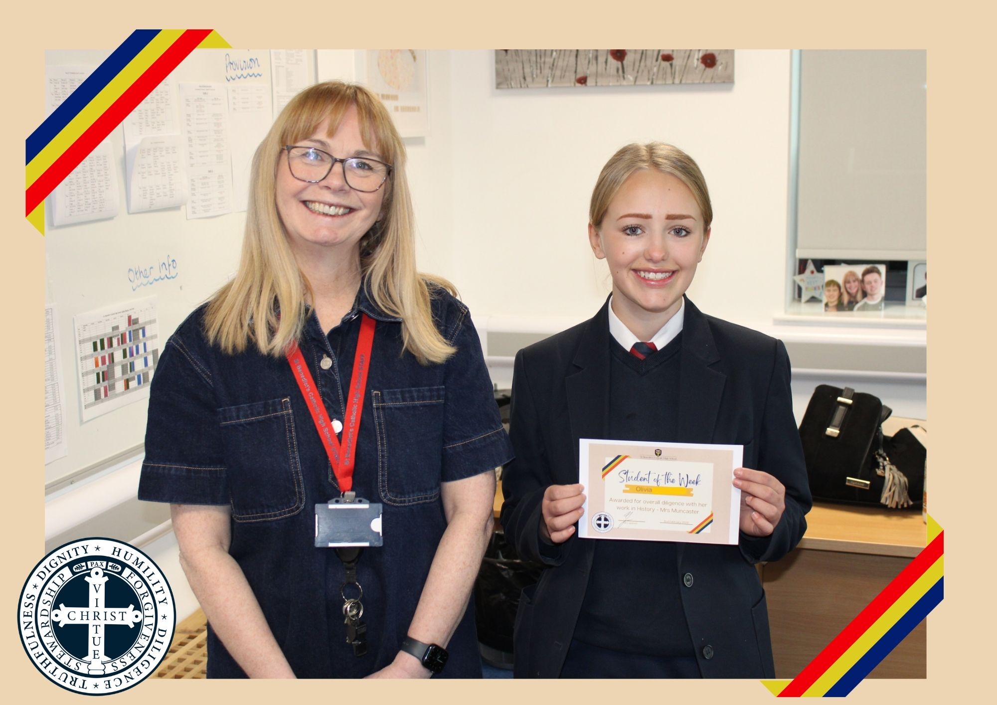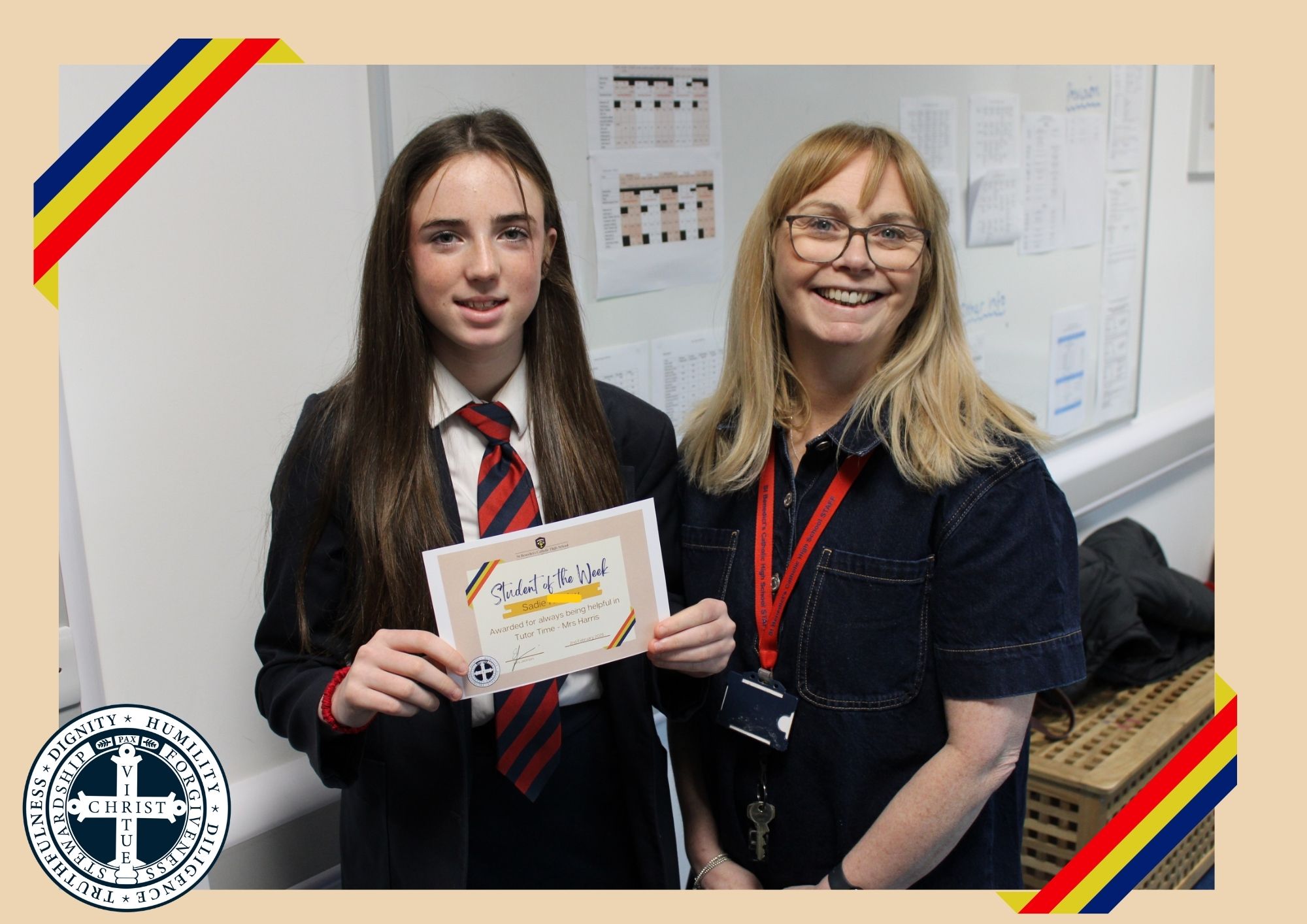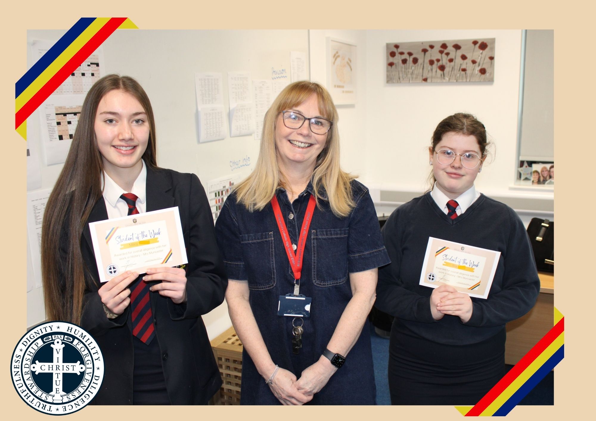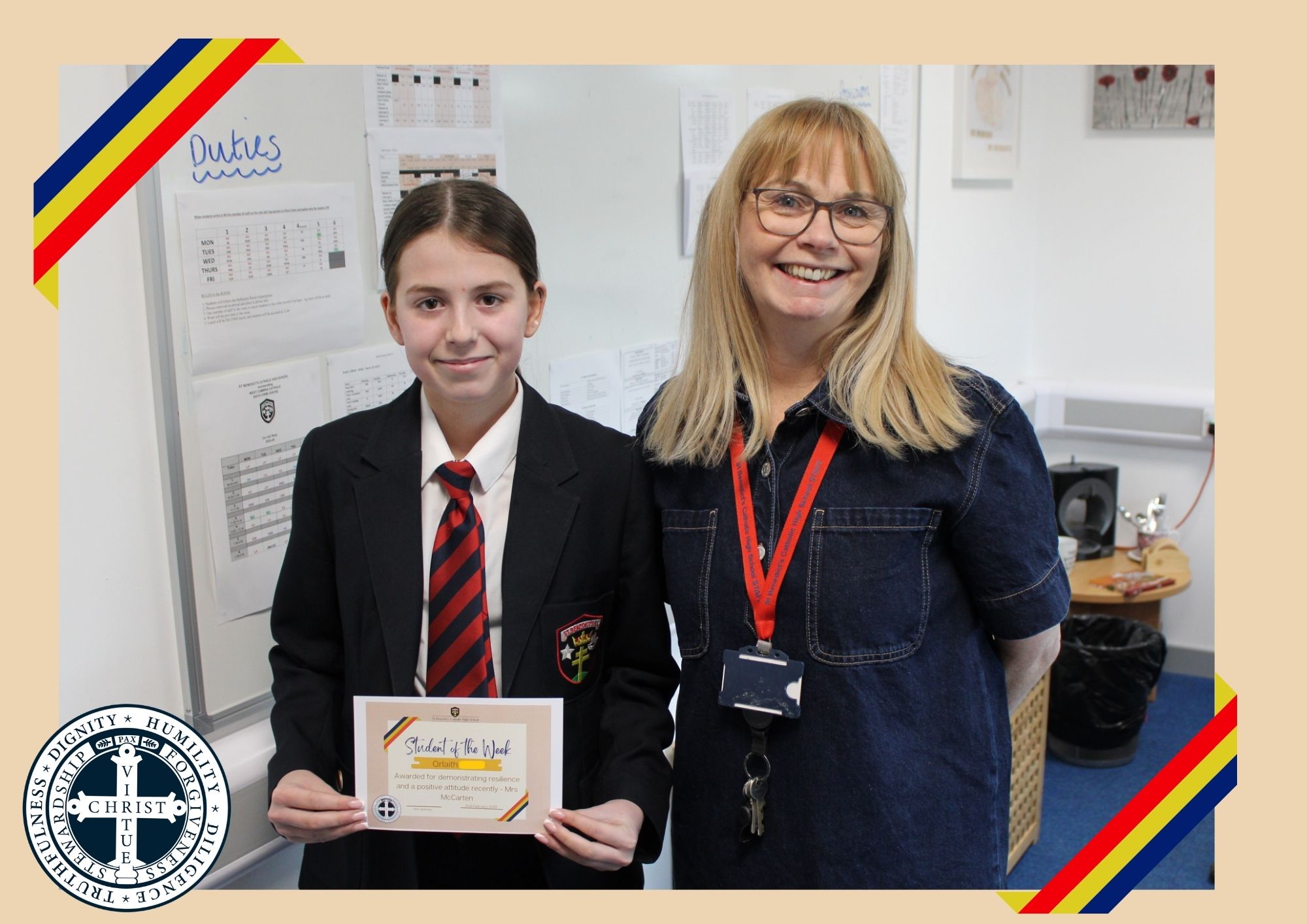 Year 7 – Orlaith P – Awarded for demonstrating resilience and a positive attitude recently – Mrs McCarten