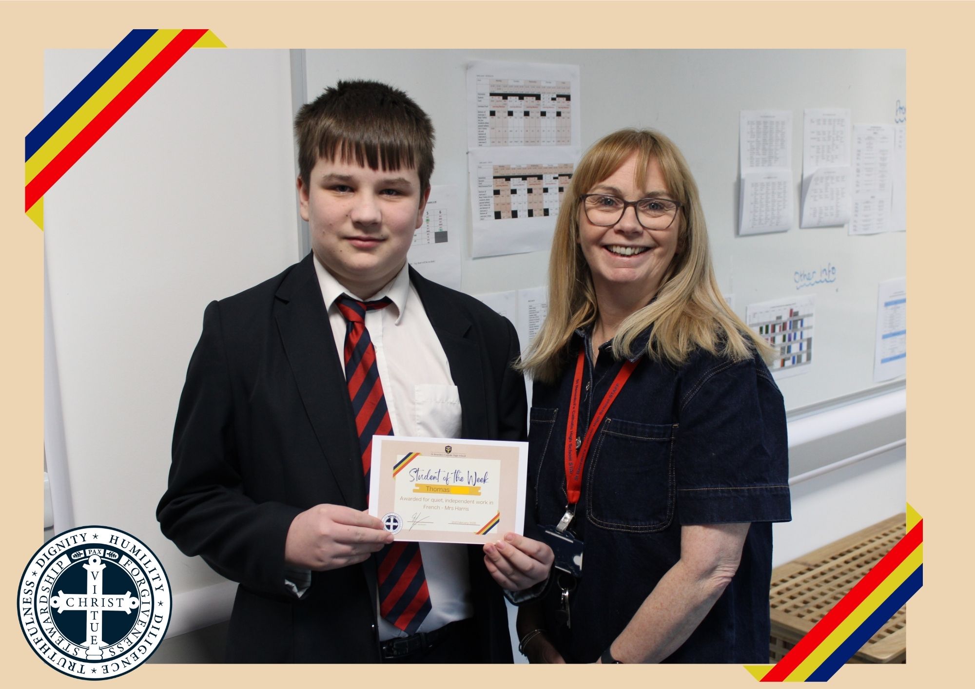 Year 8 – Thomas C – Awarded for quiet, independent work in French – Mrs Harris
