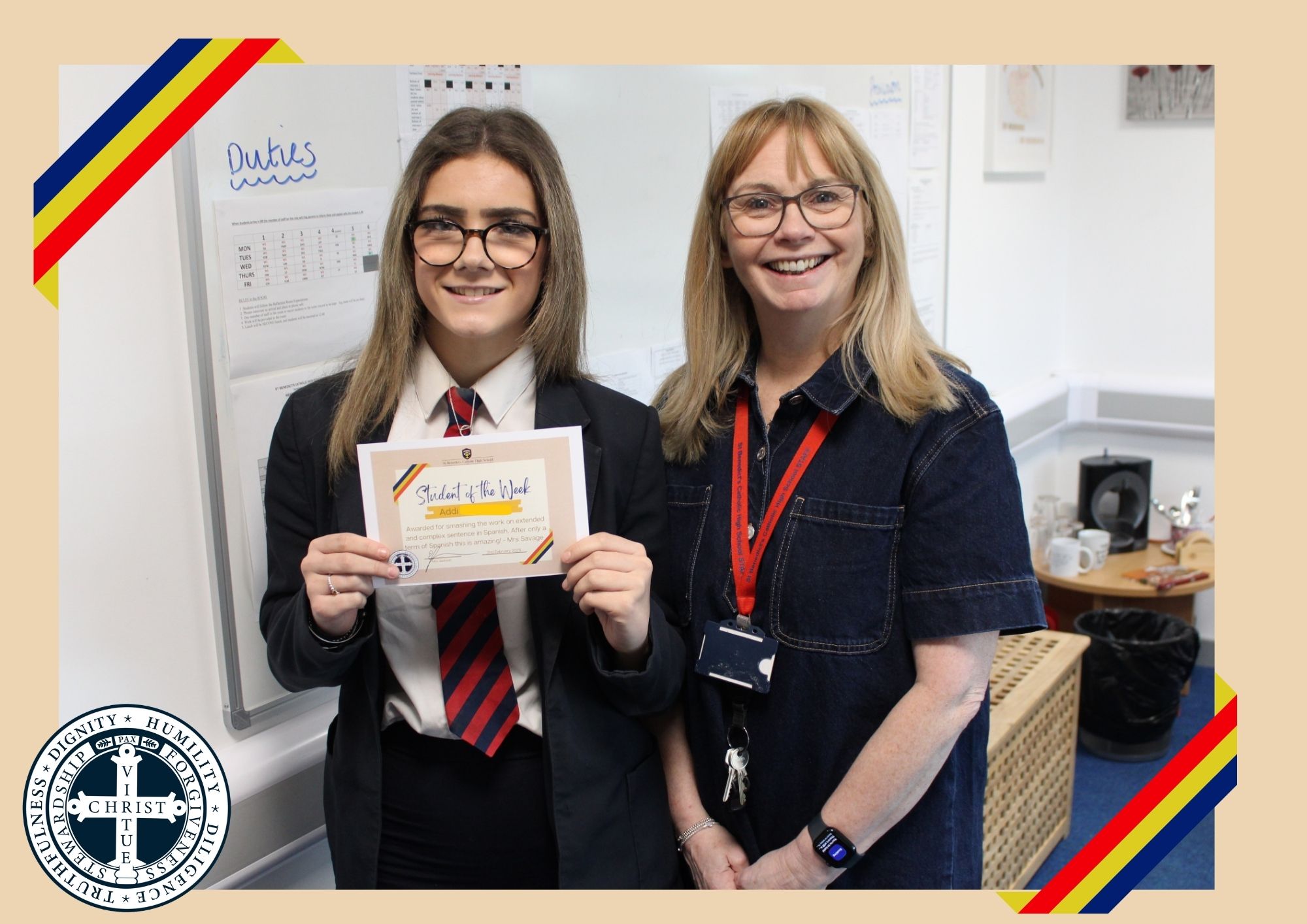 Year 9 – Addi F – Awarded for smashing the work on extended and complex sentence in Spanish. After only a term of Spanish this is amazing! – Mrs Savage