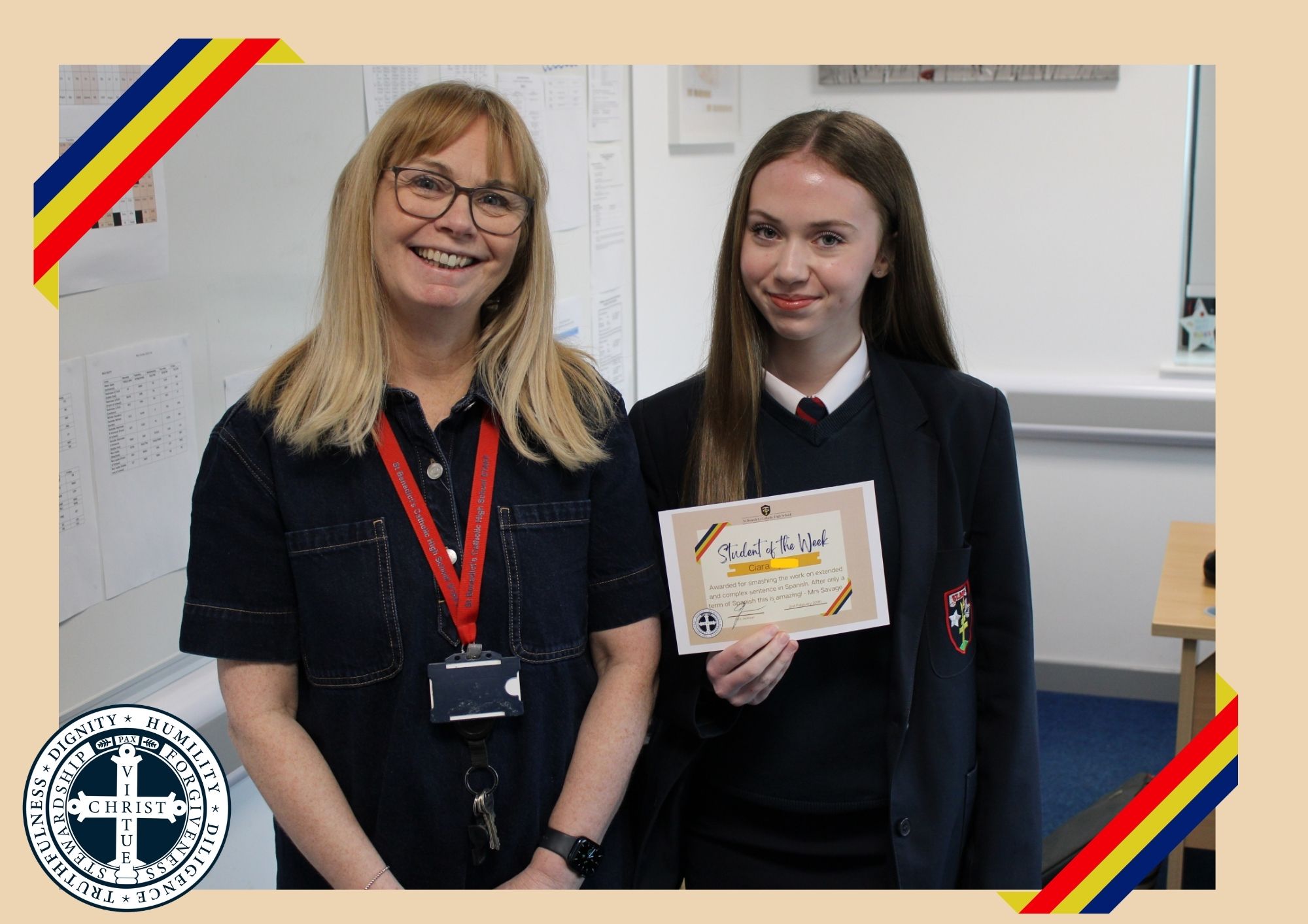 Year 9 – Paige McC – Awarded for smashing the work on extended and complex sentence in Spanish. After only a term of Spanish this is amazing! – Mrs Savage