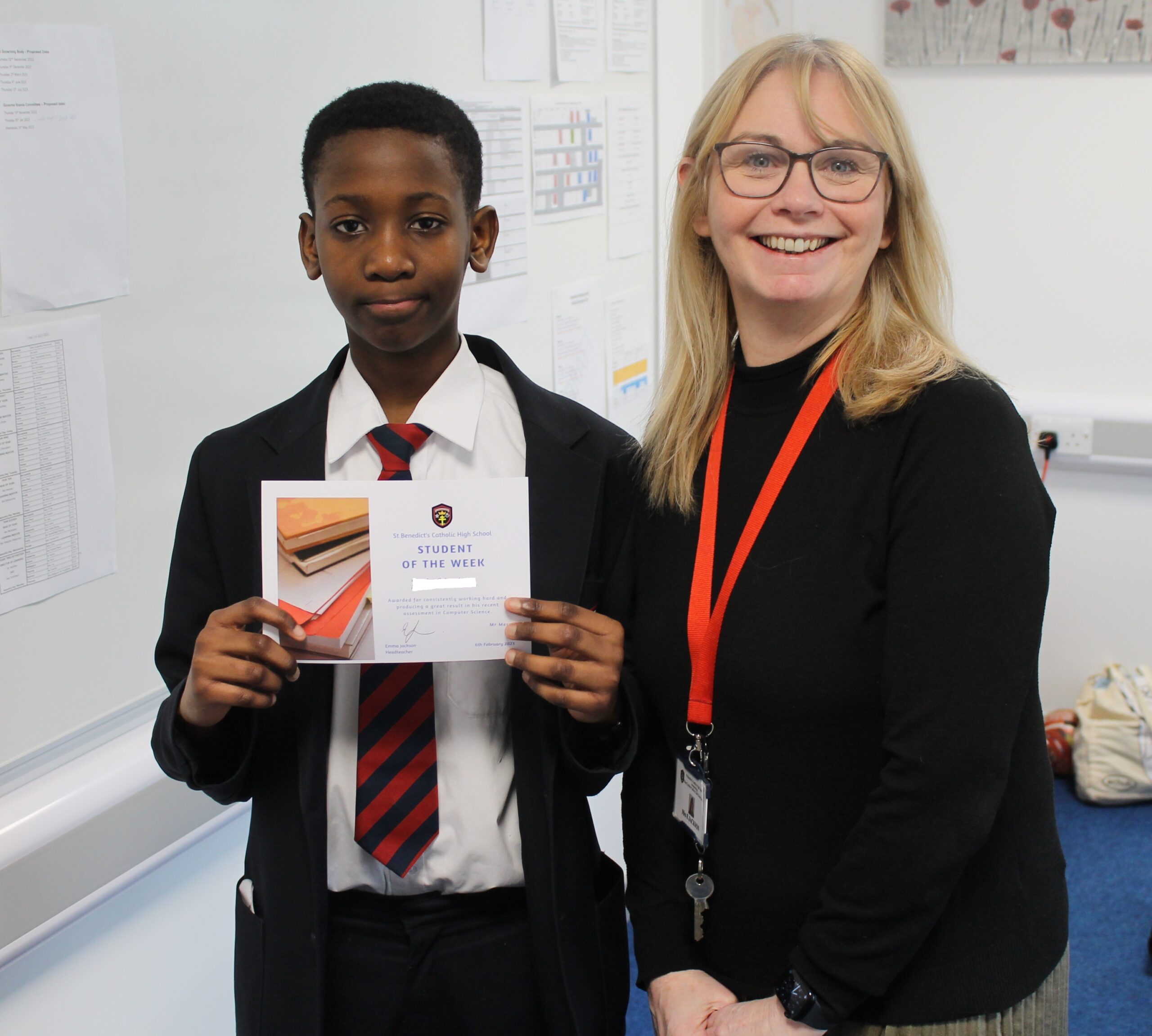 Year 7 – Kobi Maduka – Awarded for consistently working hard and producing a great result in his recent assessment in Computer Science – Mr Merry