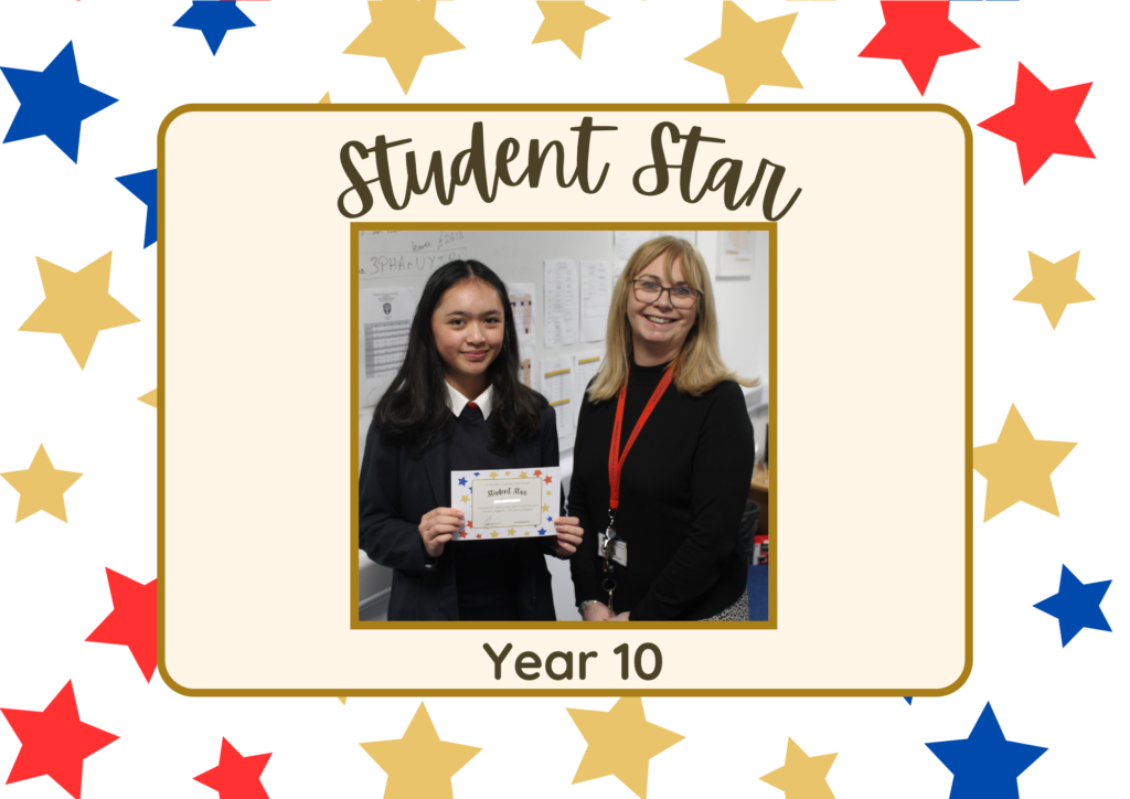 Year 10 – Sophia Juson – Awarded for reading very well in assembly and showing diligence – Mrs Percival Boyton