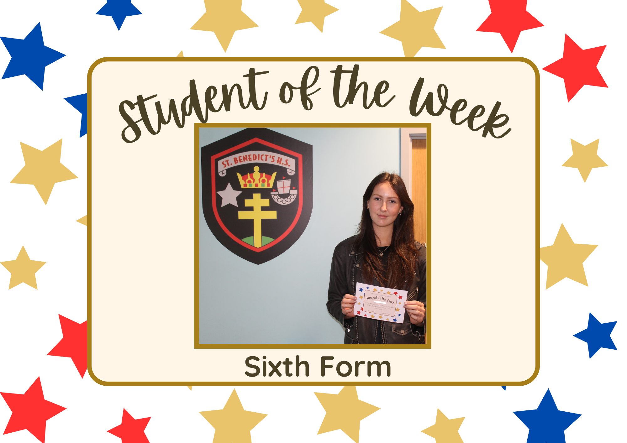 Sixth Form – Student of the Week – Mya Barwise – Awarded for kindness in sharing ideas with others, that was very helpful – Miss Thompson