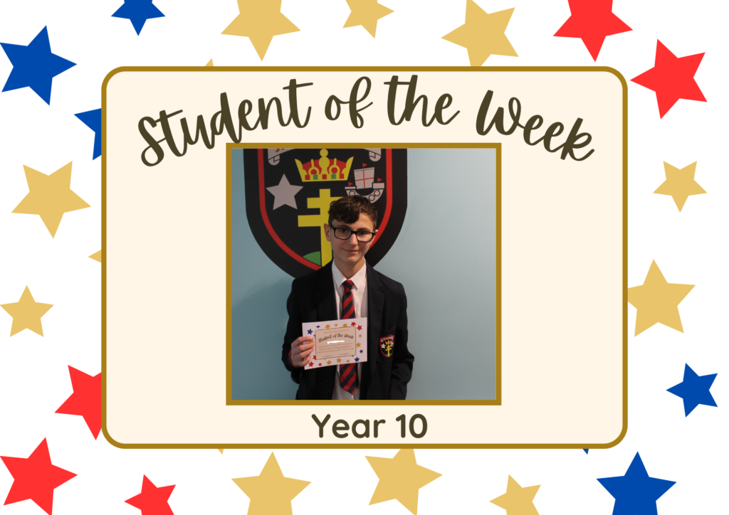 Year 11 – Student of the Week – Aiden Thompson – Awarded for producing quality answers in his recent exam practice questions – Mr Charlton