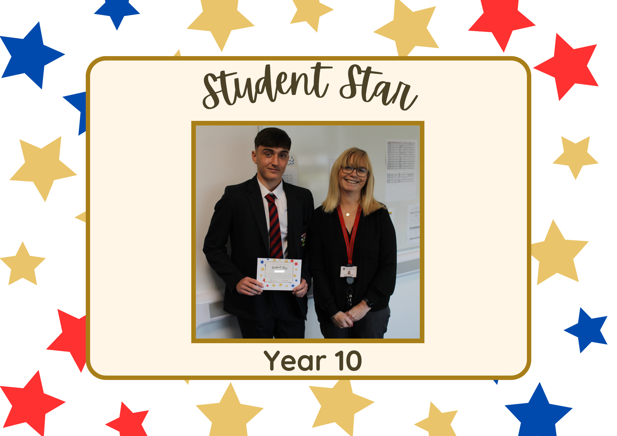 Year 10 – Adam R – Awarded with two nominations! Firstly, for settling perfectly into Year 10 English and for being proactive in class. Secondly, for going above and beyond in Geography – Miss Thompson and Mr Hamilton